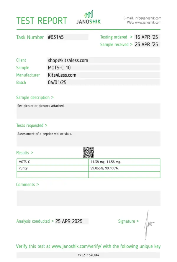 MOTS-c is a naturally occurring mitochondrial-derived peptide that plays a key role in cellular energy regulation, fat metabolism, and glucose control. Often referred to as a “metabolic mini-hormone,” MOTS-c enhances the body’s ability to burn fat, improve insulin sensitivity, and adapt to metabolic stress — making it an ideal peptide for those seeking fat loss, improved endurance, and anti-aging support.
