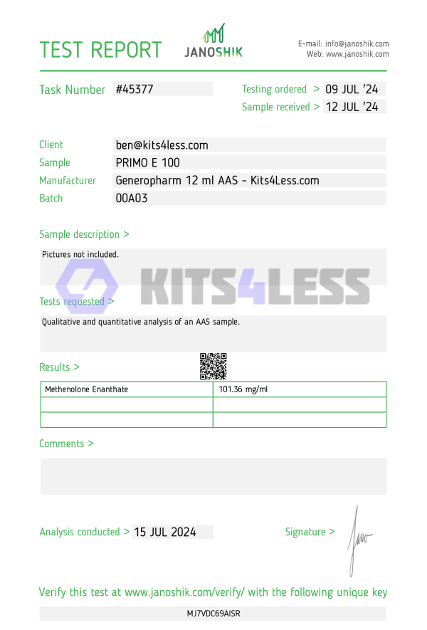 Primobolan Enanthate (Methenolone Enanthate) is a long-acting injectable anabolic steroid derived from dihydrotestosterone (DHT). Known for its extremely low androgenic activity and lack of estrogenic effects, Primo is favored for its clean, lean muscle gains, excellent tolerability, and favorable cosmetic outcomes, especially during cutting or recomp cycles.
